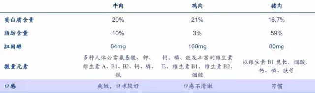肉類品質(zhì)競爭力比較(每100g含量),牛肉高品質(zhì)和高價格同消費力密切相關(guān)