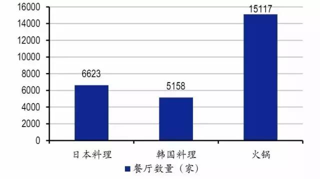以海鮮為主打的日料店同樣在一二線城市發(fā)展迅速。根據(jù)調(diào)查機構(gòu)對北京、上海、廣州、深圳、南京5座一線城市的餐飲調(diào)查報告顯示,以上一線城市分別有6623家日本料理餐廳和5158家韓國料理餐廳,日韓料理業(yè)態(tài)終端數(shù)量合計數(shù)正在快速追趕火鍋餐廳。日本料理中的壽司、刺身(生魚片)等深受海鮮消費群體喜愛。