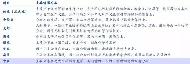 區(qū)域性。由于海水產(chǎn)品對生長海域的水溫、氣候等均有較為嚴格的要求,因此海水產(chǎn)的打撈或養(yǎng)殖領(lǐng)域就相對固定,具有明顯的區(qū)域性特征。且相同種類海產(chǎn),在不同的水域生長,其產(chǎn)品特征、口味都會有所不同。