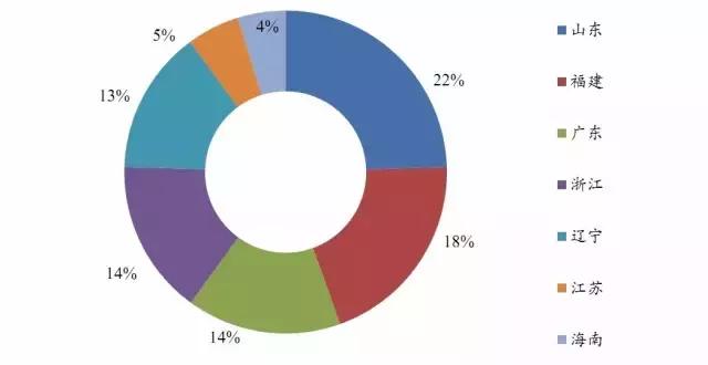 國內(nèi)海水養(yǎng)殖的主要海水產(chǎn)品種的主產(chǎn)區(qū)域也各不相同。如大黃魚主產(chǎn)自福建,海參主產(chǎn)自山東、遼寧,對蝦主產(chǎn)自廣東、廣西等省份。